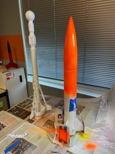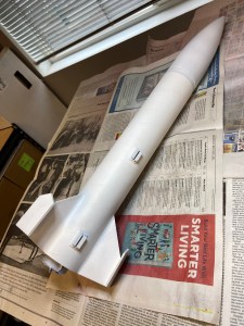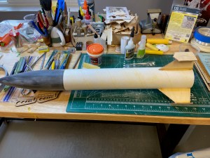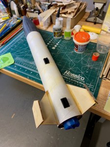 The finished rocket is pretty unique. With the small fins and outside stabilizers it should fly fast and straight.